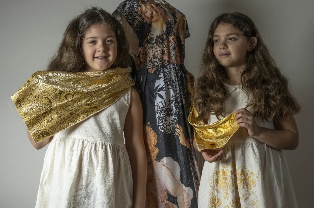 Gli abiti in foto sono con modello uguale ma stampa a mano diversificata. Ha un aspetto raffinato e comodo in puro cotone. L artista ha utilizzato la cornice color oro ed argento per impreziosire il capo e renderlo prezioso senza eccessi.